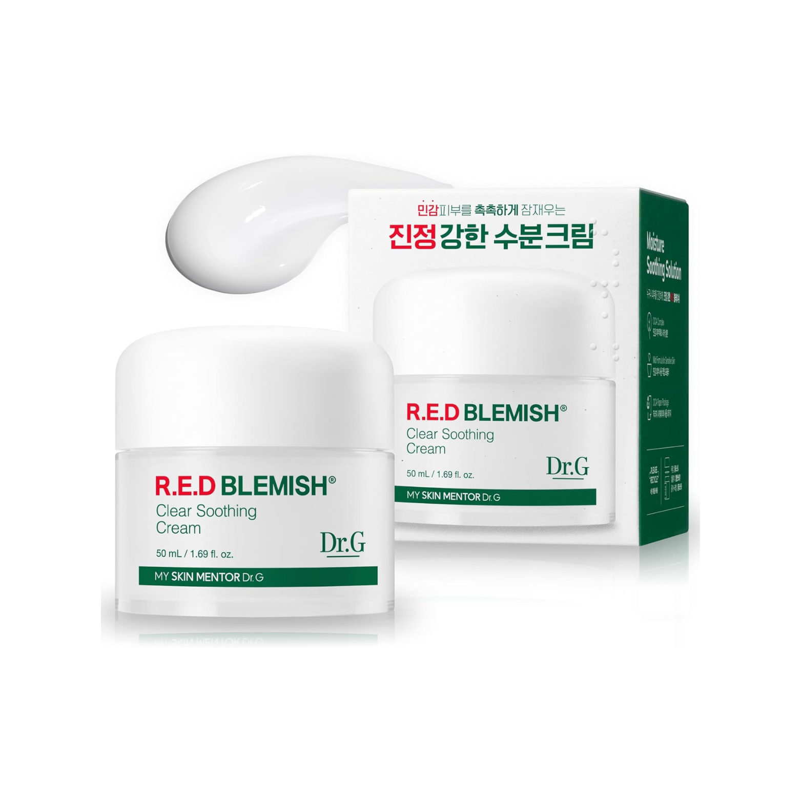 كريم دكتور جي ريد بليميش كلير المهدئ هو مرطب كوري شهير للعناية بالبشرة، مصمم لتهدئة البشرة وترطيبها وتخفيف احمرارها. يتميز بقوام جل خفيف وغير لزج، مناسب للبشرة المعرضة لحب الشباب والحساسة والجافة، ويحتوي غالبًا على 10 أنواع من نبات السيكا لتهدئة التهيج. تشمل مكوناته الرئيسية النياسيناميد والبانثينول والسينتيلا أسياتيكا.