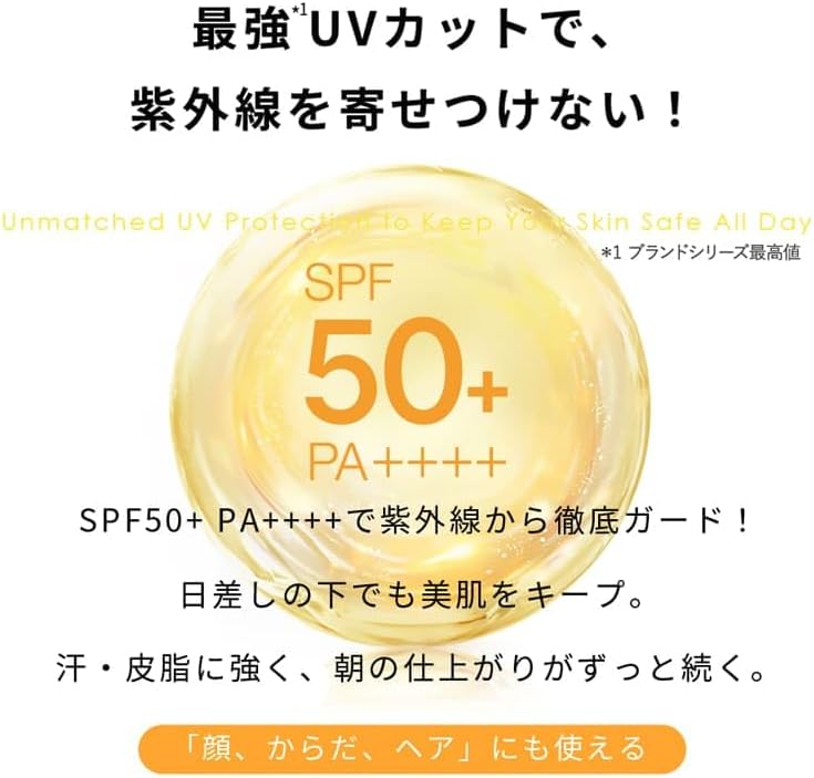 SPF50+ PA++++ لحماية كاملة من الأشعة فوق البنفسجية UVA/UVB
