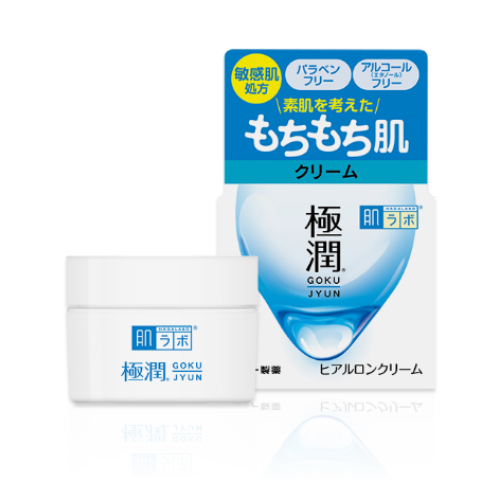 Hada Labo Gokujyun Hyaluronic Cream is a rich cream packed with the hydration your skin craves. It contains four types of hyaluronic acid (moisturizing ingredients).