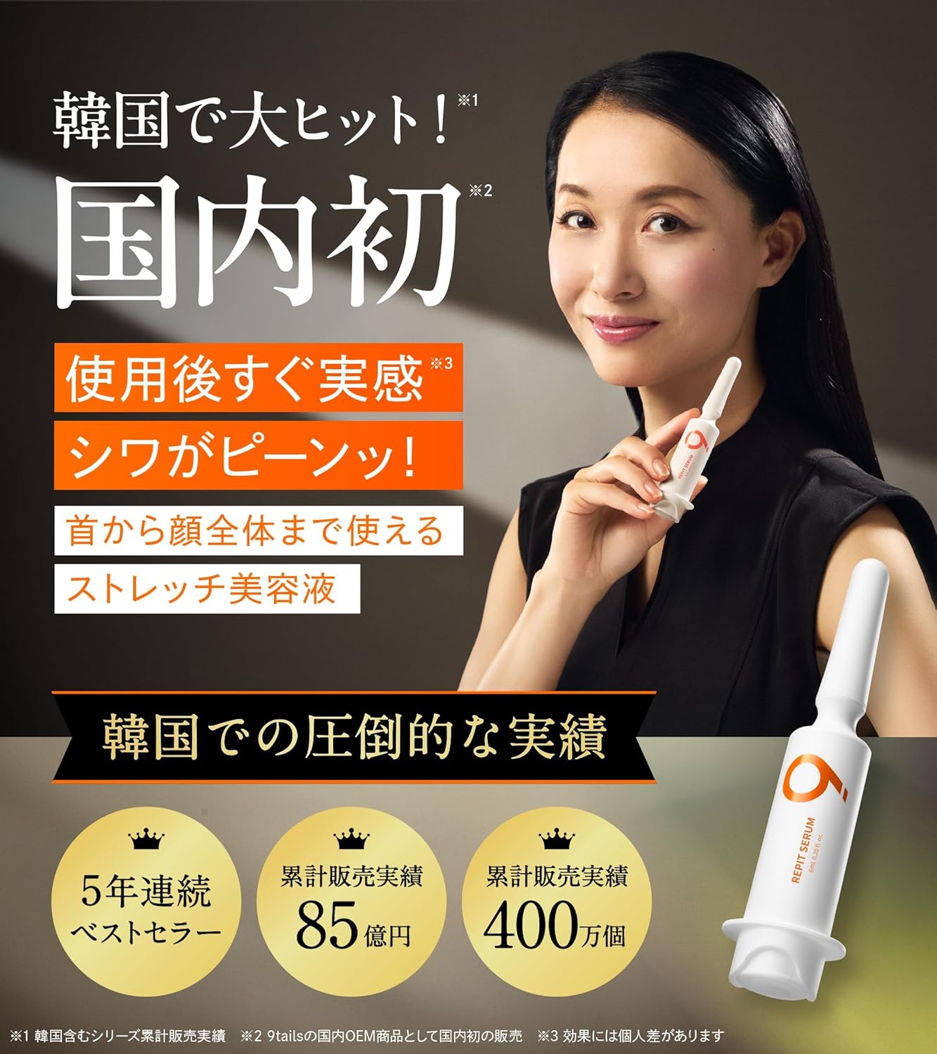 Introducing Japan’s first arrival of Repit Serum by NINETAILS — a groundbreaking Korean skincare innovation clinically recognized by Korea’s Ministry of Food and Drug Safety. This concentrated stretch serum delivers visible firming in just 30 seconds, offering an injectable like effect without needles. Designed for the face and neck, it targets fine lines, loss of elasticity, and dullness with a powerful fusion of Exosomes, PDRN, and Collagen Spicule technology.