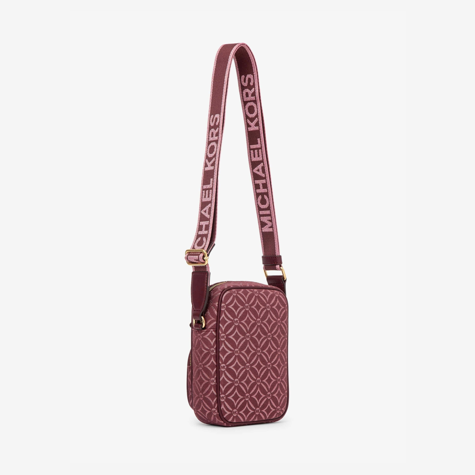 MICHAEL KORS OUTLET – JET SET ITEM Bolsa transversal com logotipo metálico em jacquard, média