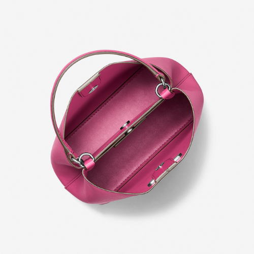 A Michael Kors Pratt Bucket Crossbody Small combina elegância compacta com design funcional, tornando-a uma bolsa ideal para o dia a dia. Confeccionada em lona revestida durável, esta bolsa transversal estilo balde possui uma parte superior totalmente aberta com fecho magnético seguro, garantindo fácil acesso e mantendo seus itens essenciais seguros.